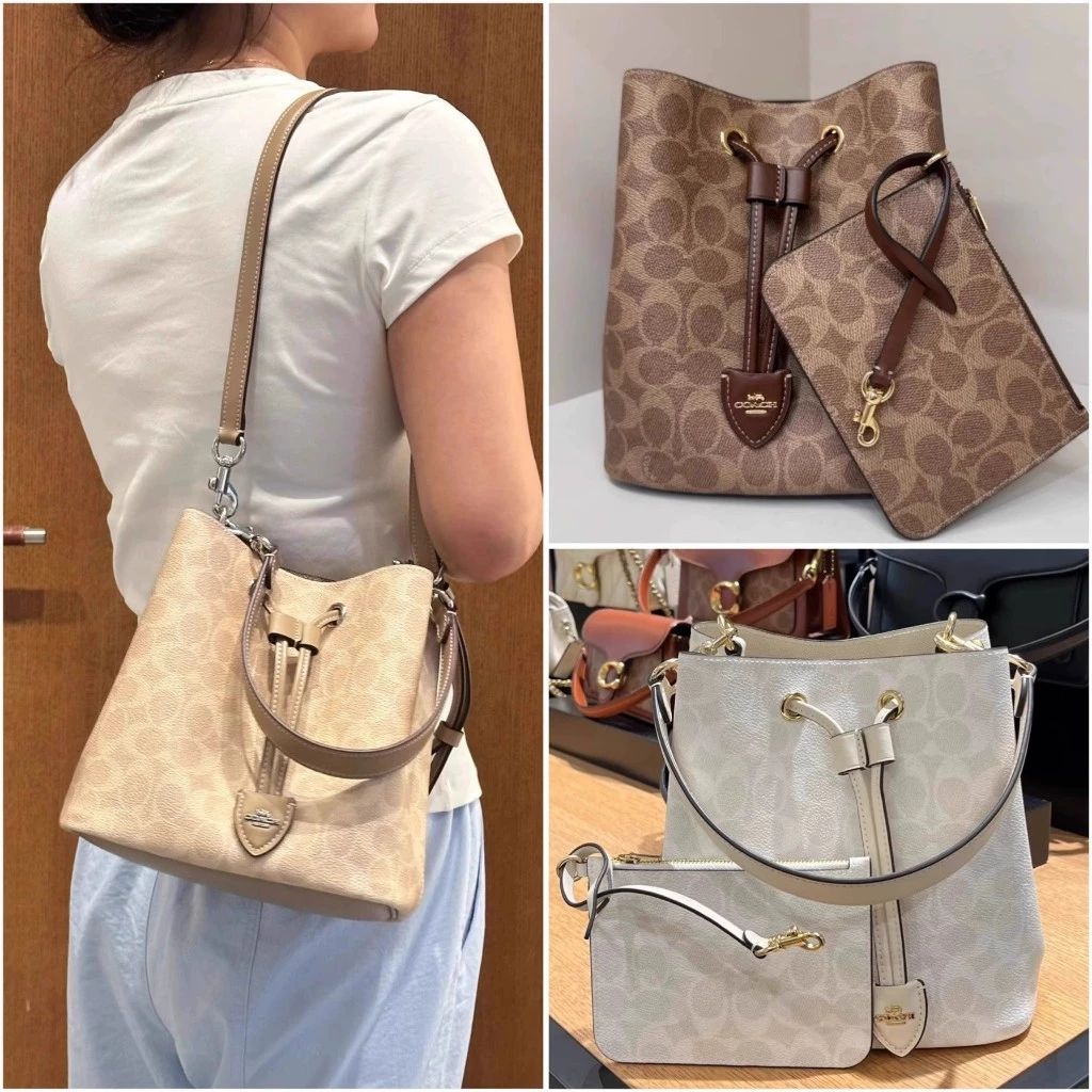 COACH Rowan Bucket Bag In Signature Canvas Handbag Including Small Wallet Tas Selempang Tas Kurir Termasuk Dompet Kecil